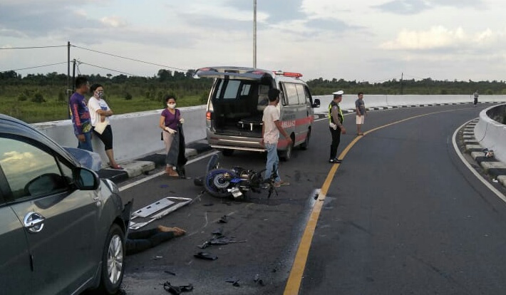 “Peristiwa ini dikarenakan pengendara sepeda motor dengan kecepatan tinggi,”kata M Syaufan Nor.