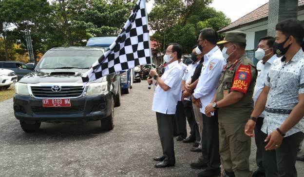 KASONGAN, KaltengEkspres.com – Bupati Katingan Sakariyas, melepas logistik pelaksanaan pilkades serentak 42 Desa 13 Kecamatan di Katingan, di Kantor DPMDes Katingan, Rabu (17/11/2021).