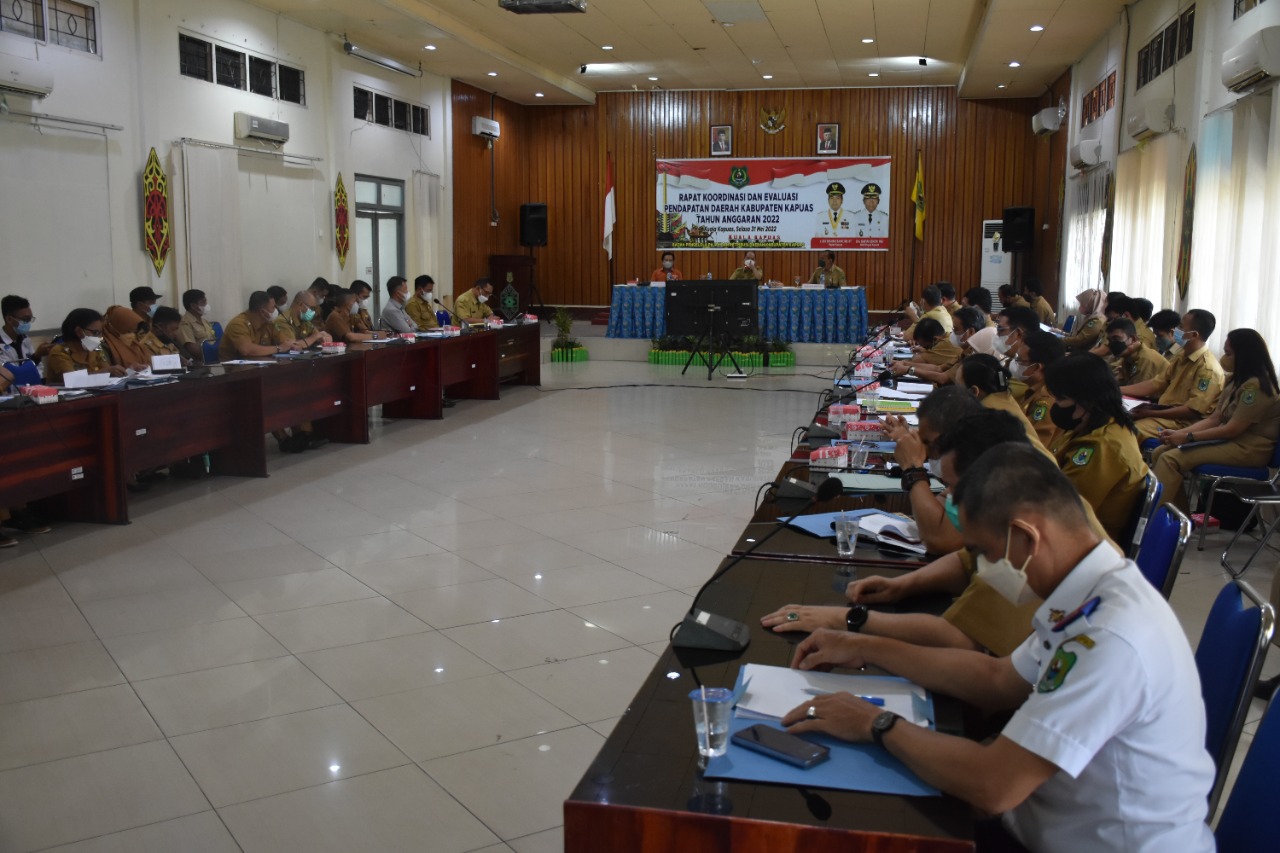 KUALA KAPUAS, KaltengEkspres.com -Bupati Kapuas Ben Brahim S Bahat memimpin langsung rapat koordinasi dan evaluasi pendapatan asli daerah (PAD) Kabupaten Kapuas tahun anggaran 2022. Kegiatan ini bertempat di Aula Bapedda, Selasa (31/5/2022).