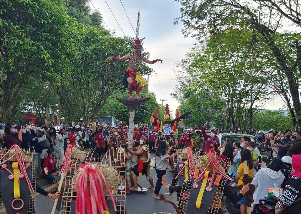 “Atraksi rombongan karnaval ini menyuguhkan suatu penampilan tentang harmonisasi manusia dan alam berupa karya kreatifitas seni tarian, rupa dan property karnaval yang berangkat dari kekhasan alam dan budaya masyarakat Murung Raya,” kata Ferdinand.