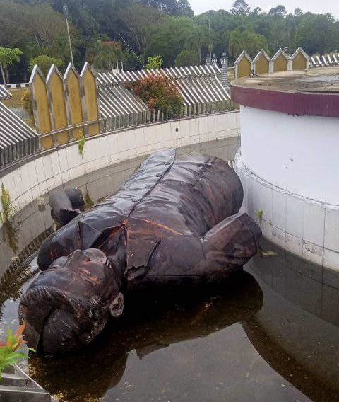 KASONGAN, KaltengEkspres.com– Patung pahlawan nasional yang terletak di depan Kantor Bupati Katingan tiba-tiba ambruk separuh badan. Peristiwa ini diketahui Jumat (18/6/2022) malam.